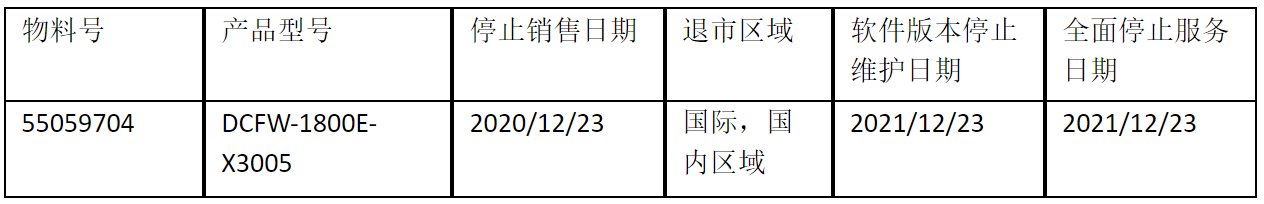 北京K8凯发一触即发云科信息技术有限公司正式通知您, 以上DCFW-1800E-X3005下一代防火墙(55059704)将于20201223号停止接收新的订单(具体日期见上表),不再供货。给您带来的不便,敬请原谅。